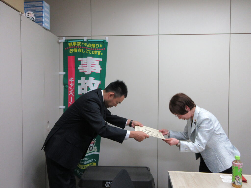 感謝状をいただきました。